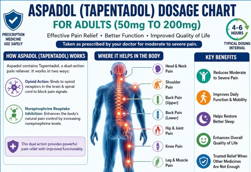 The Aspadol 100mg Tapentadol dosage guidance for adults is a valuable tool for managing pain safely and effectively. Following medical advice and understanding how dosage works can make a significant difference in your treatment journey.